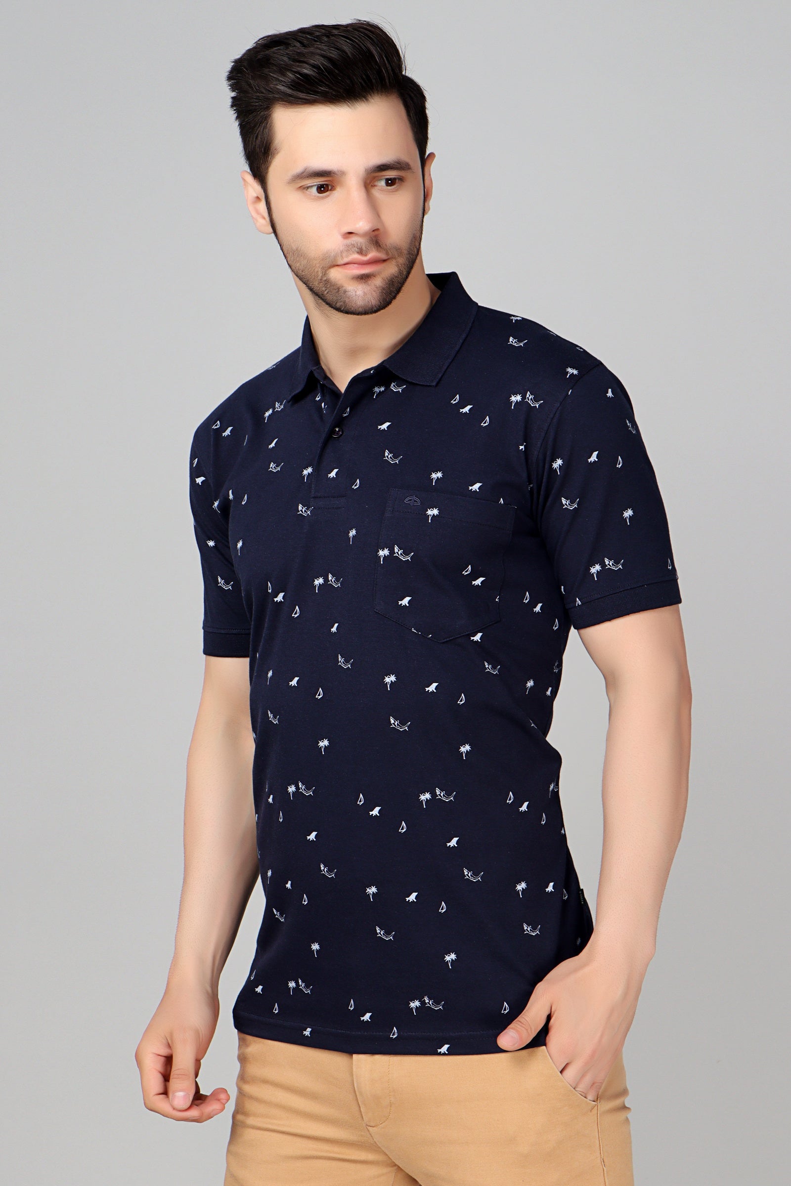 Pair Your All Over Print Polo with Jeans/Chinos.